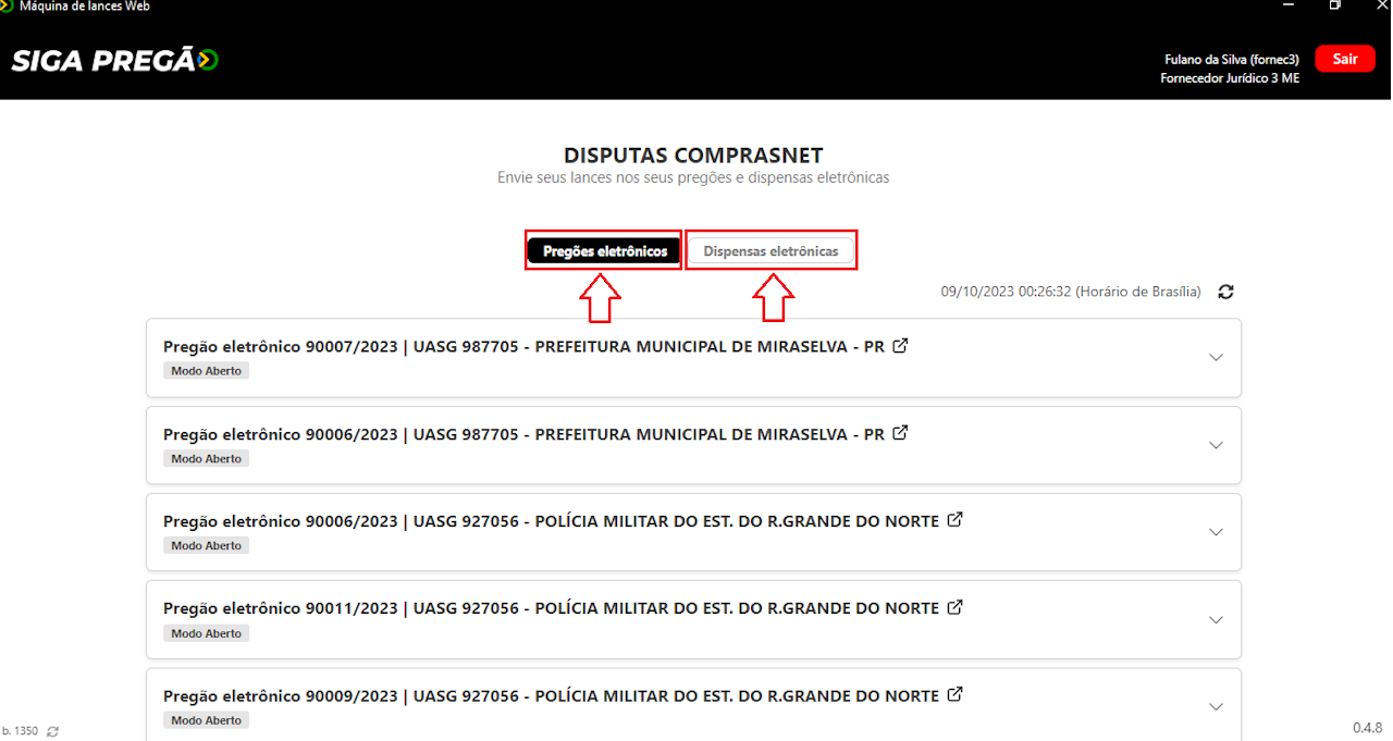 Sim, com a máquina de lances você poderá participar de Pregões eletrônicos e Dispensas eletrônicas, sejam eles da nova ou antiga lei.