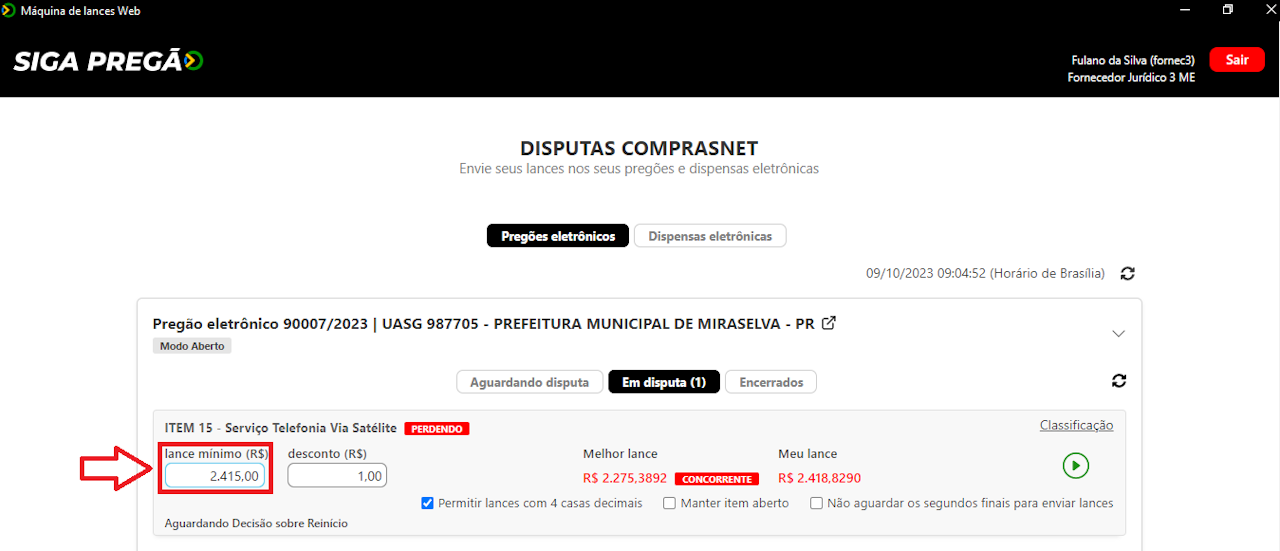 A máquina de lances vai respeitar o seu valor mínimo definido, por conta disso nem sempre será possível ficar em primeiro, já que em alguns casos os seus concorrentes poderão dar lances menores do que o seu, mesmo assim a máquina de lances irá buscar, dentro do lance mínimo informado, uma melhor colocação para você.