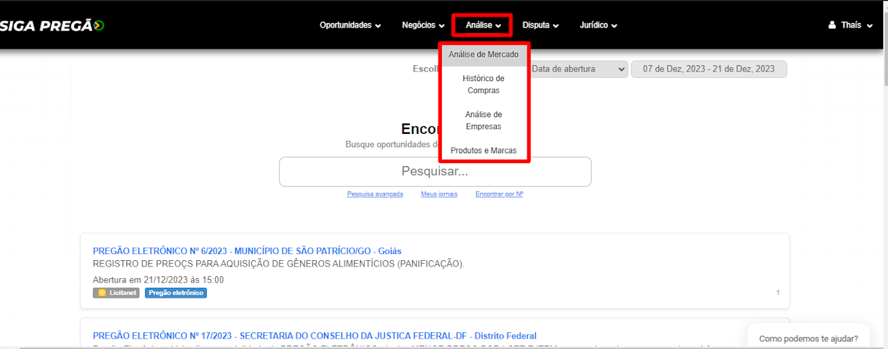 Na ANÁLISE DE MERCADO você terá acesso a estatísticas de licitações encerradas nos últimos anos para o produto ou serviço que deseja.